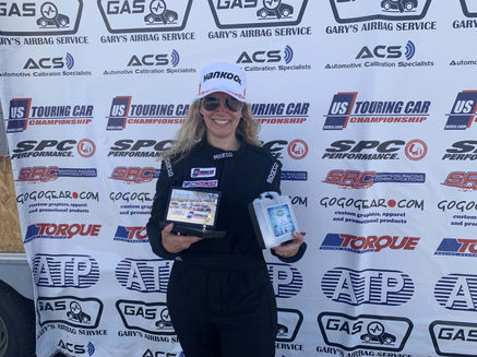 The Sportsman Class looked like it could belong to McColligan as he qualified well ahead of everyone else in the class and looked like the fastest car. However, he had a poor start and opened the door at Turn 1 for Marion Engelke’s Gary’s Air Bag Service BMW 328i. Engelke tried to take the position away but ran wide and was off the track. McColligan took the opportunity to open up as big of a gap as possible in the MC Racing Honda Civic. Behind him was Becky Arsham in the Konig Wheels Honda Civic who also saw the opportunity to build a gap over Engelke. Meanwhile Engelke who was furious with herself was determined to get back to the front. She started putting in quick laps in succession and passed some cars and set the fastest lap of the race in the process. At the end, she ran out of time and ended up with a very satisfactory second place behind McColligan. Arsham finished third.