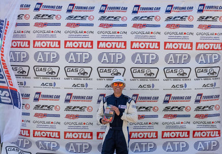 In the Super Touring class Viktor Czapla's Cool Boxx Audi R8 was leading the class but there was a new driver chasing him. Reto Baumann who normally drives the 034 Motorsport Volkswagen Jetta was tested positive for Covid which caused some negotiations between teams and Gary Sheehan of GoGoGear.com Racing was sent on loan to the Red Panther Motorsport team. Sheehan was quick in the new car and was challenging for the lead and ended up in second place with Matthew Rivkin finishing third in the second Cool Boxx Audi R8.